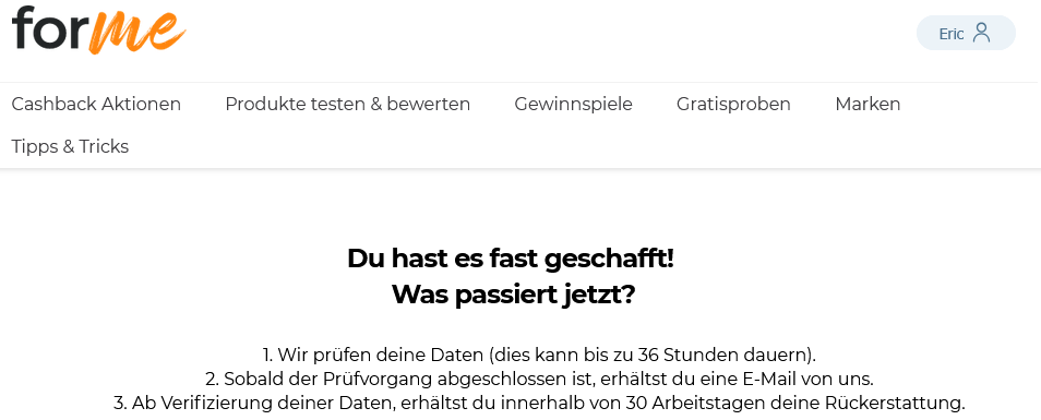 Unsere Cashback Anmeldung wird jetzt überprüft - dies dauert in der Regel zwei bis drei Werktage, danach erhält man eine Email, mit dem Hinweis, dass die Überprüfung erfolgreich abgeschlossen wurde. Und dann ist es so weit. Wir dürfen uns über die Rückerstattung freuen.
